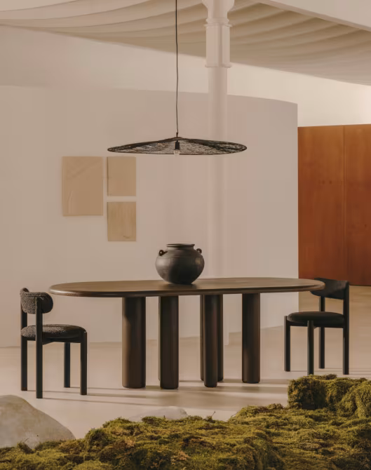 Mesa ovalada Mailen en chapa de fresno con acabado natural Ø 220 x 105 cm